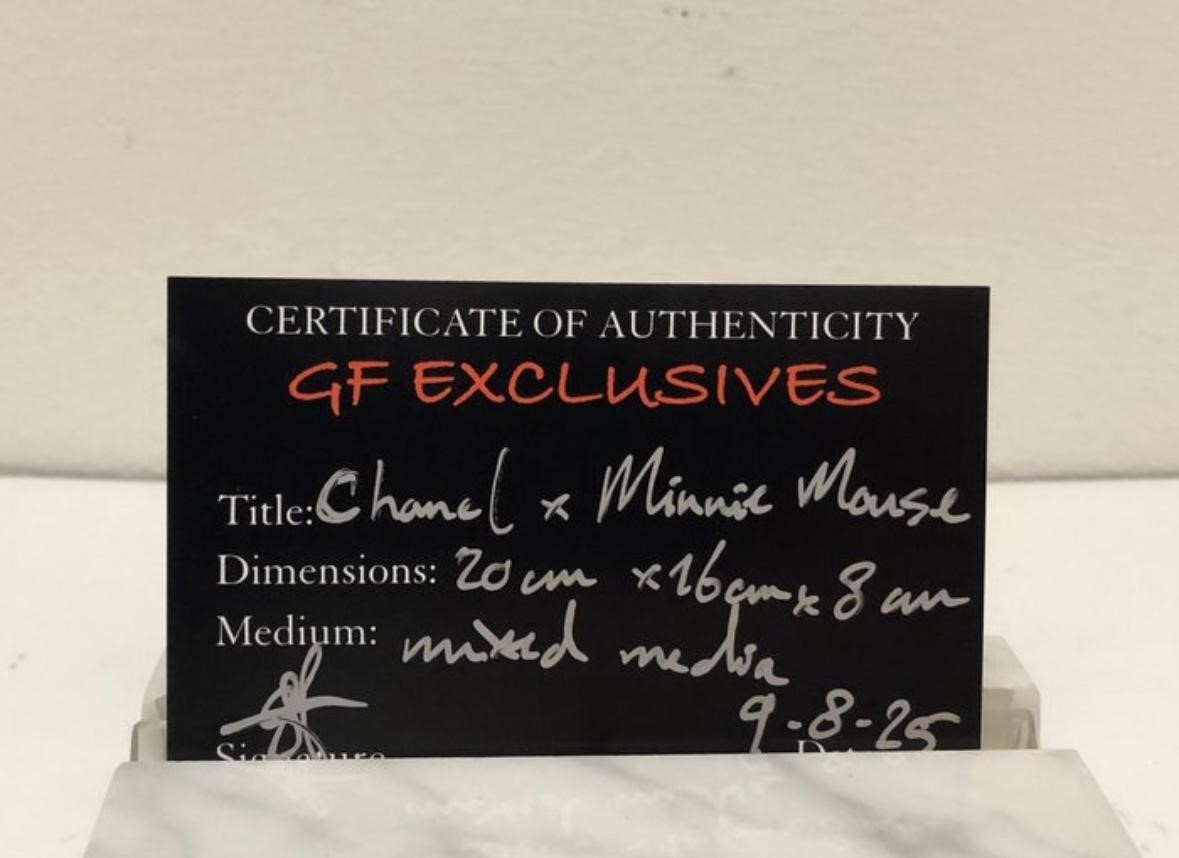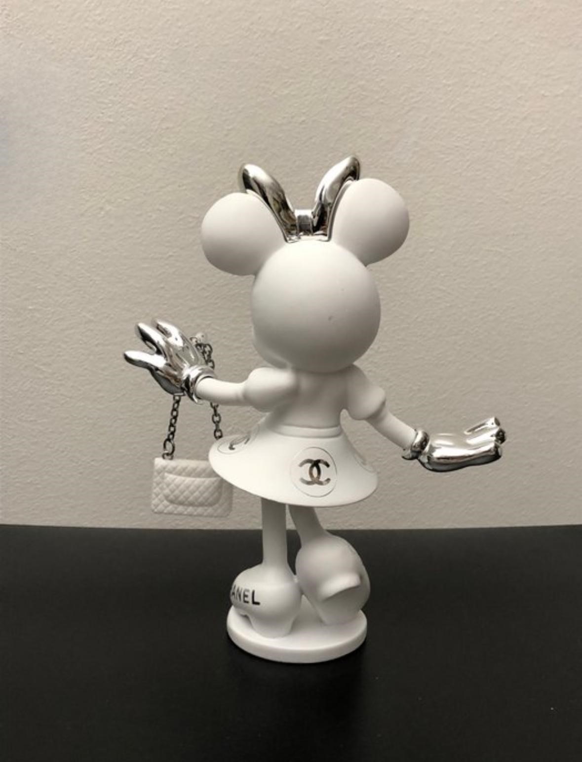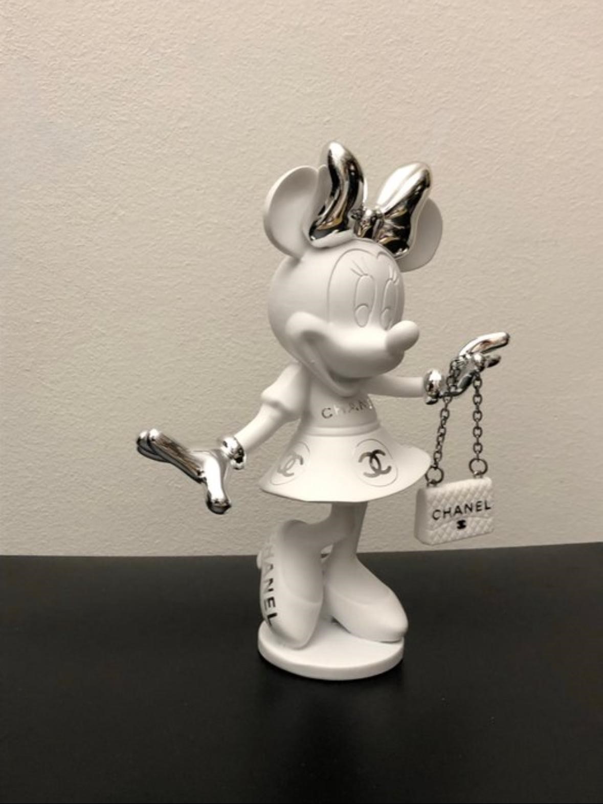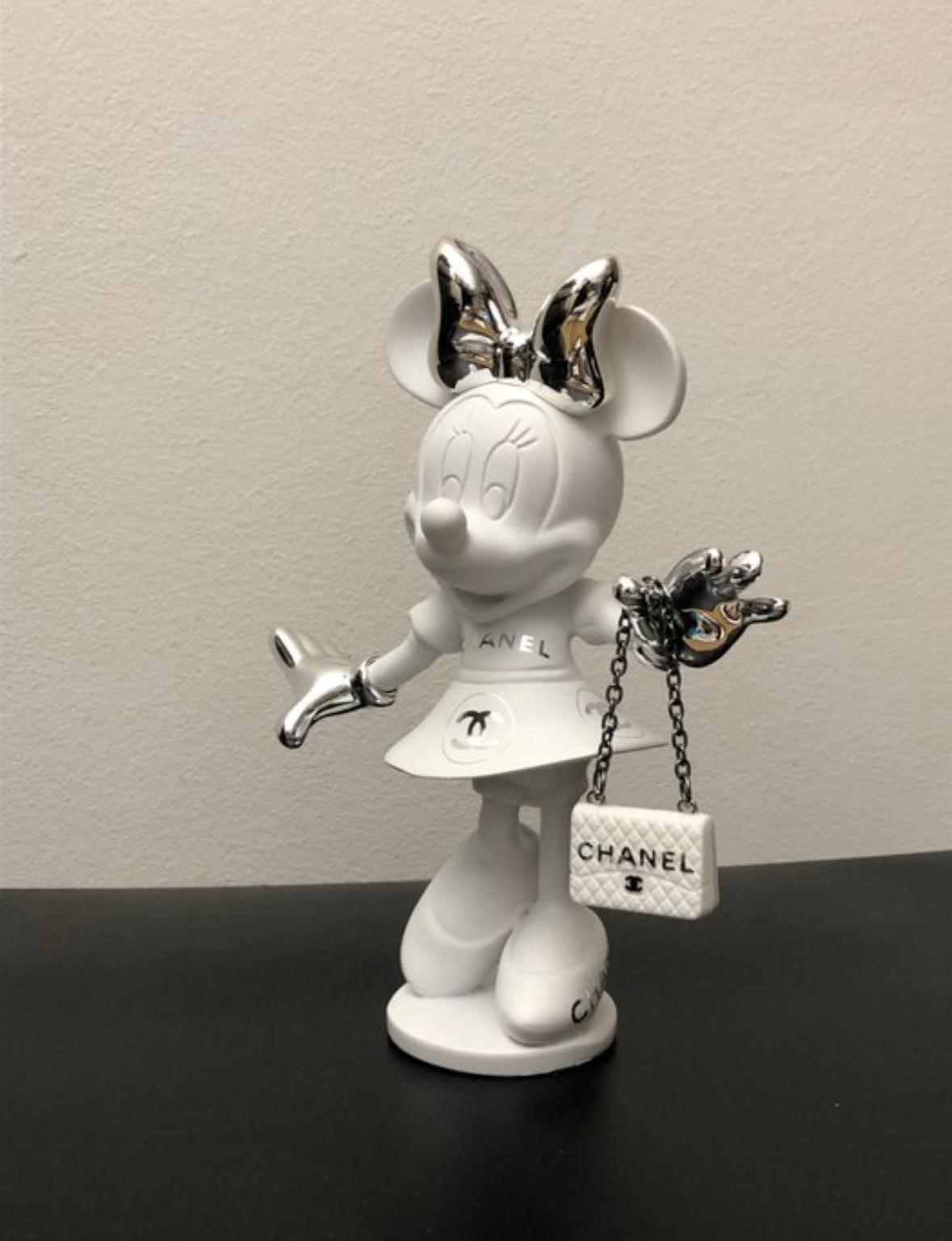 Wit & zilver, met een elegante metallic afwerking. Handgeschilderd, handgesigneerd en in beperkte oplage (2/10). Een unieke eyecatcher voor de echte liefhebber van Chanel & Disney.