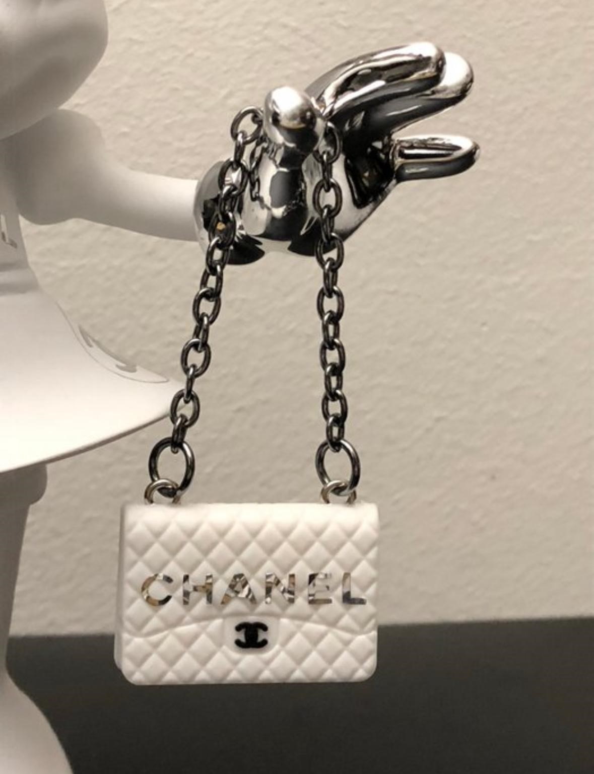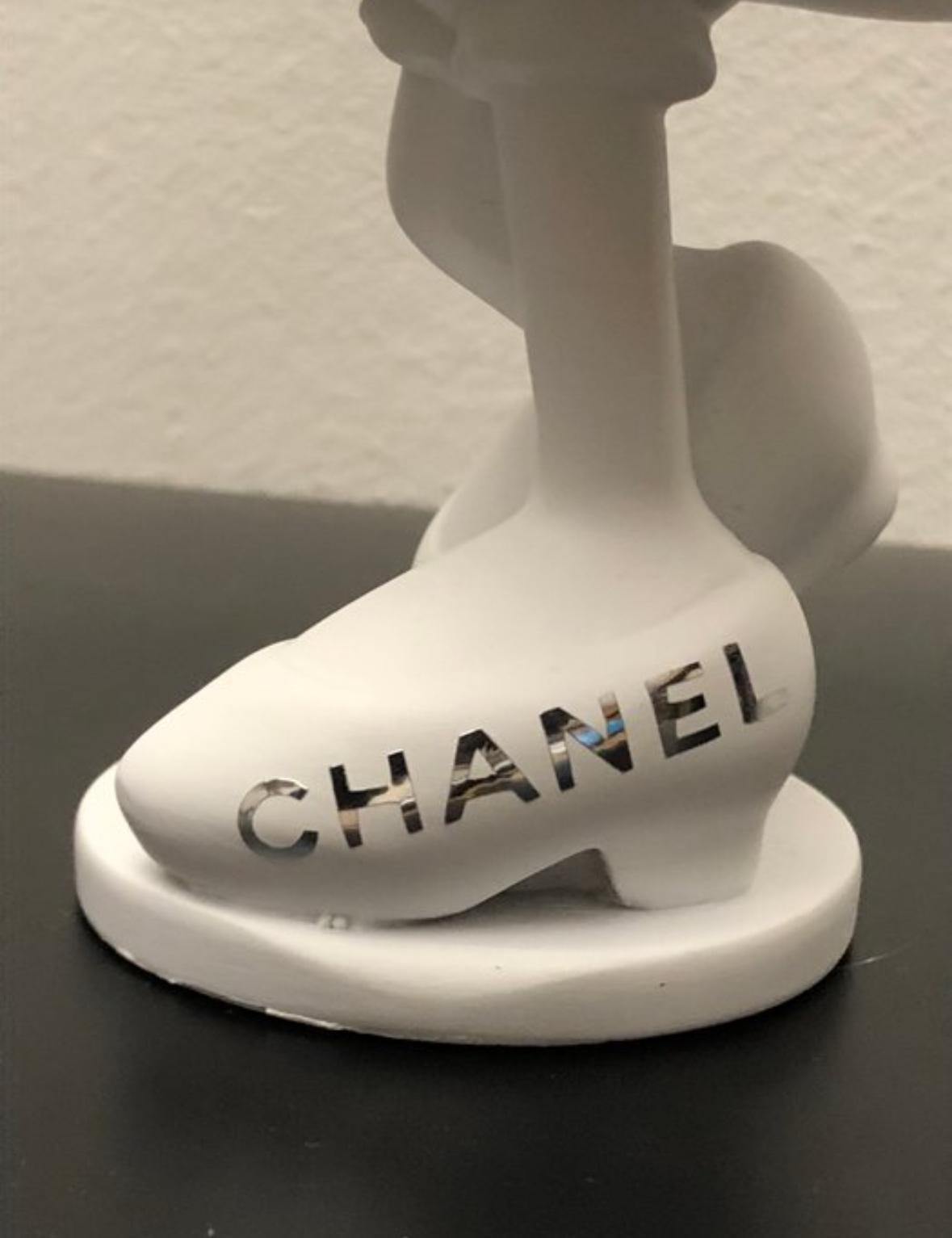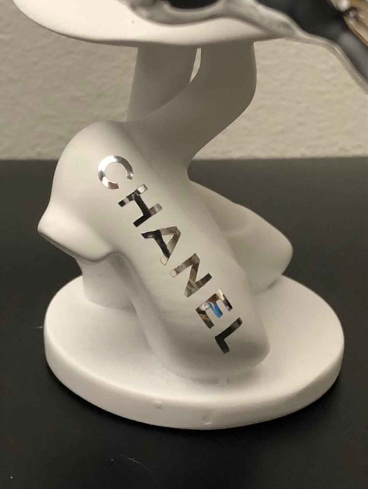 Een luxueuze popart-sculptuur van GF Exclusives, geïnspireerd op de iconische stijl van Chanel.