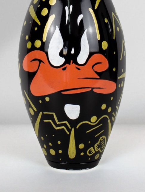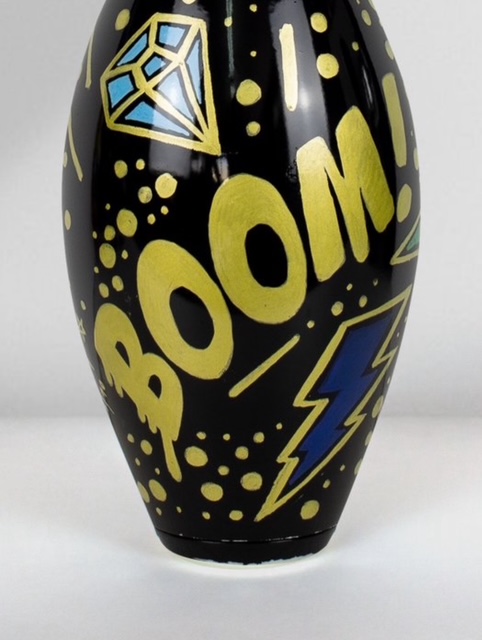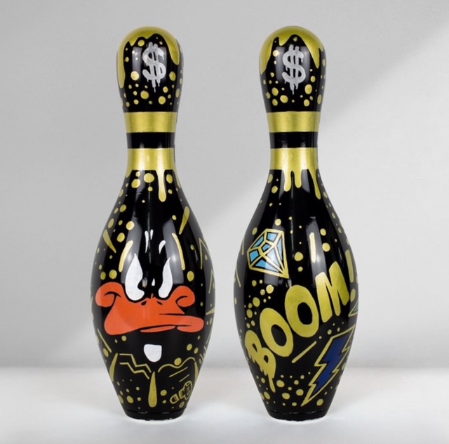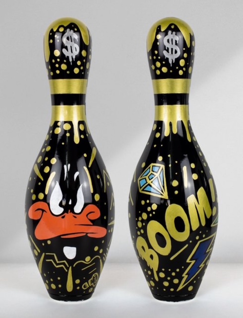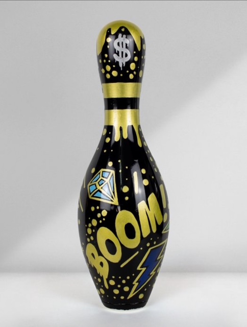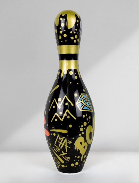 Uniek handgemaakt kunstobject van de Spaanse kunstenaar Josh Mahaby, volledig met de hand beschilderd op een authentieke USBC-bowlingkegel uit de VS.