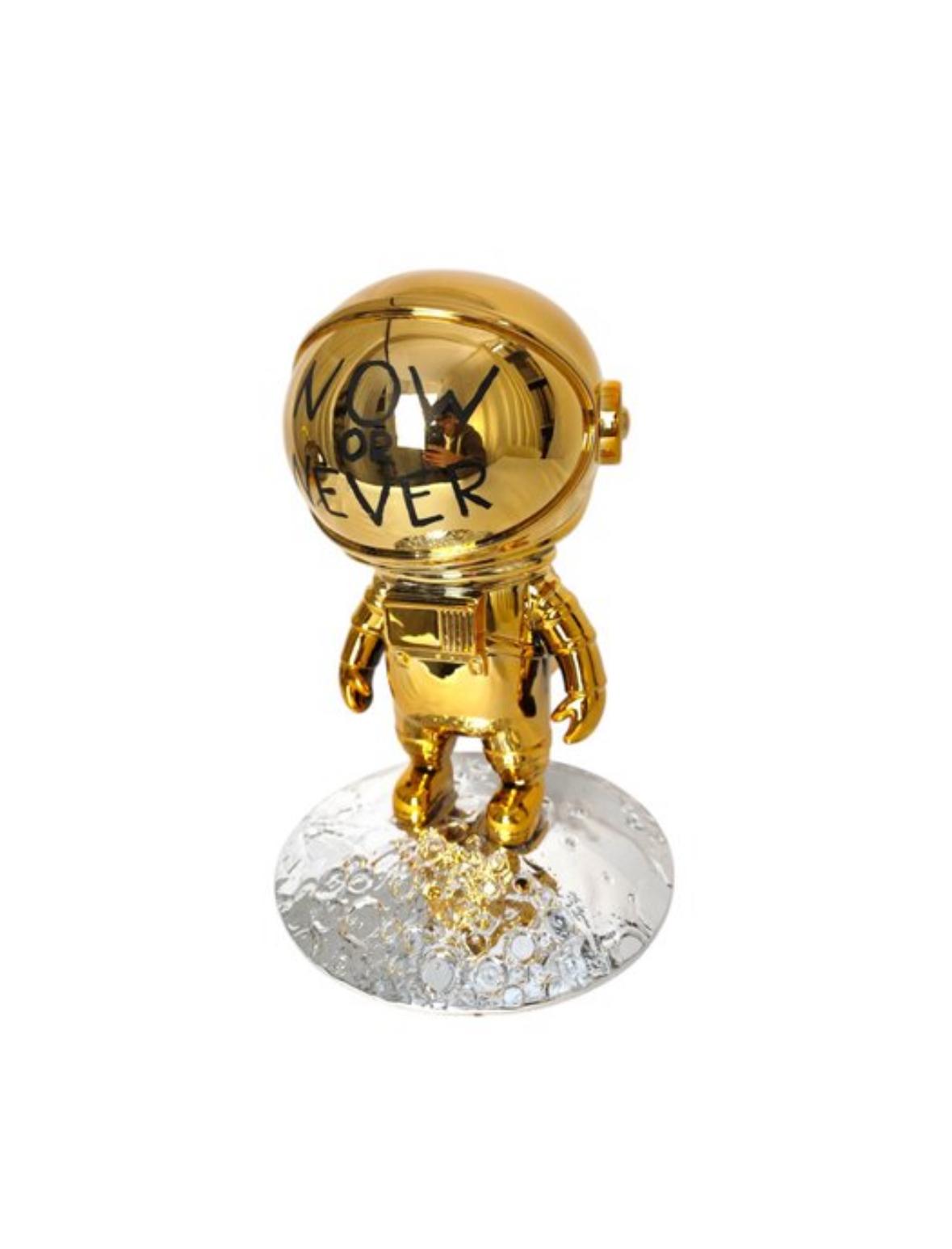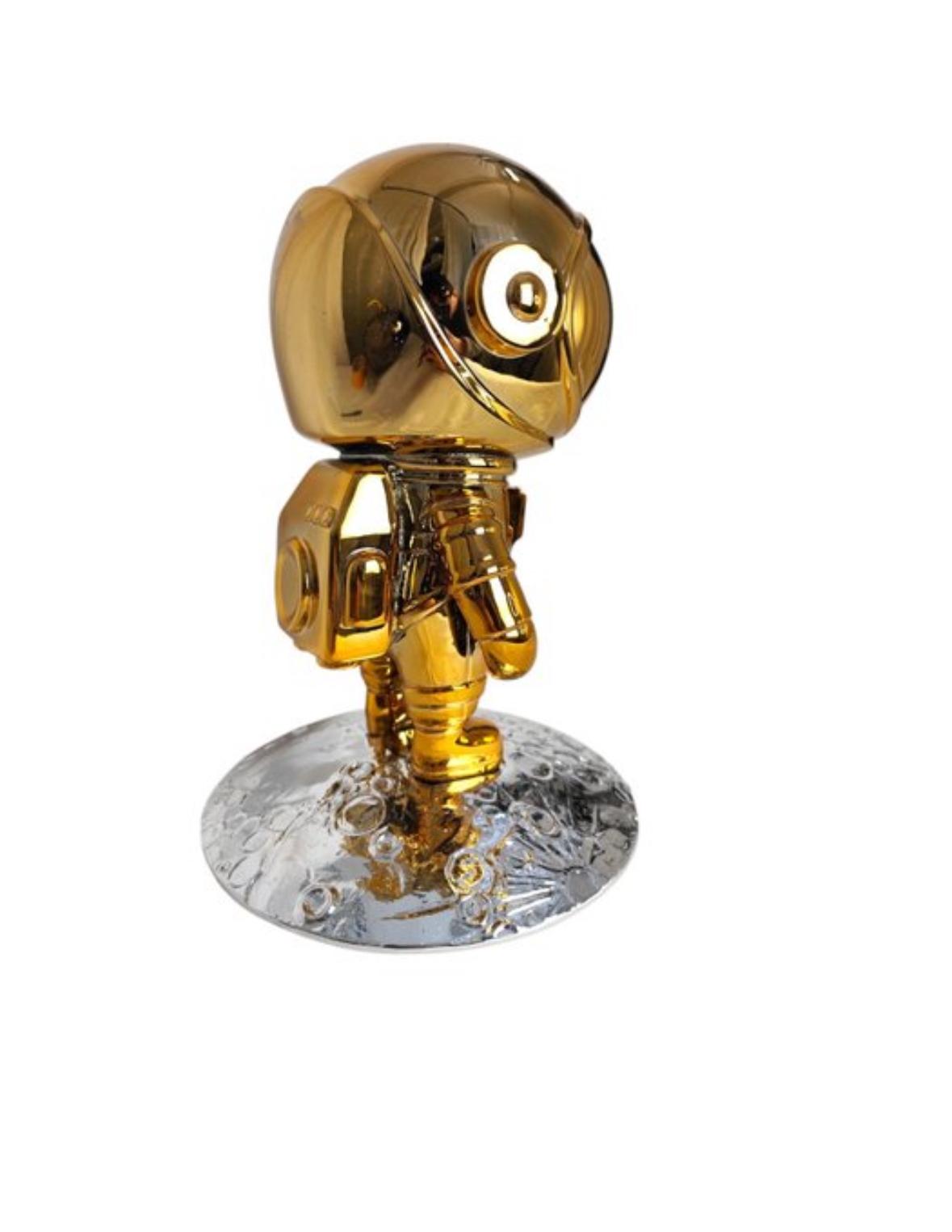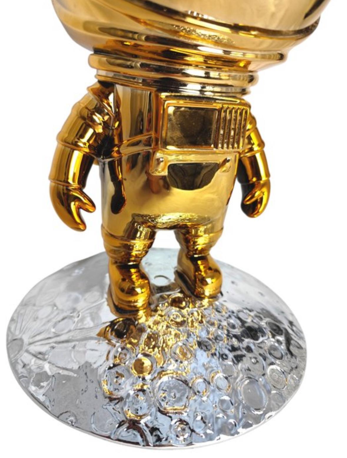 Deze handgesigneerde sculptuur is vervaardigd uit hars en marmerpoeder, en straalt dankzij de gouden afwerking pure elegantie en moderniteit uit.